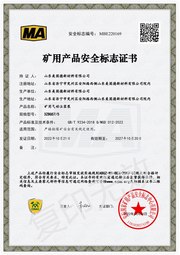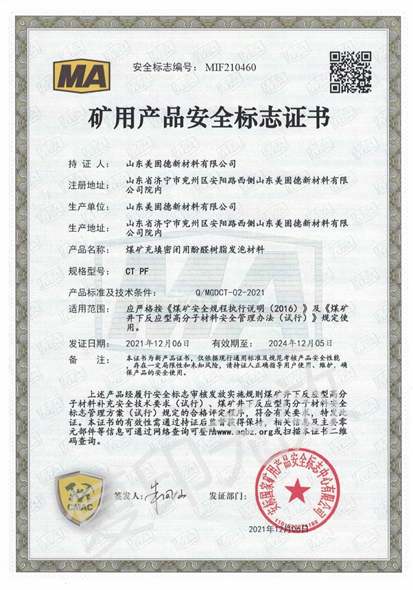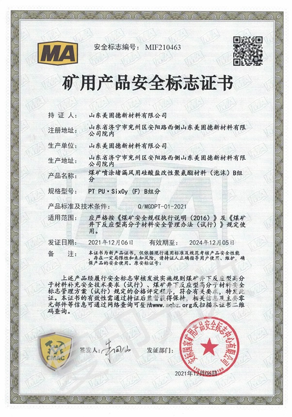 矿用产品安全标志证书...